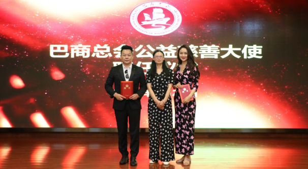 会上,巴商总会聘任巴中籍青年歌唱家李书伟先生及光雾山形象大使王乙艾女士为“巴商总会慈善公益形象大使”,并由巴中市人大常委会副主任、市工商联主席任小娟同志为两位颁发聘书。