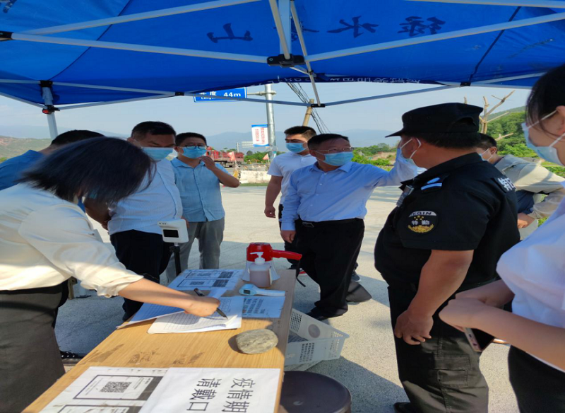 任书记在仔细听取相关介绍后,对项目的疫情防控措施落地情况表示肯定和认可,并现场观看了访客登记和工作人员问询测温的实际情况。
